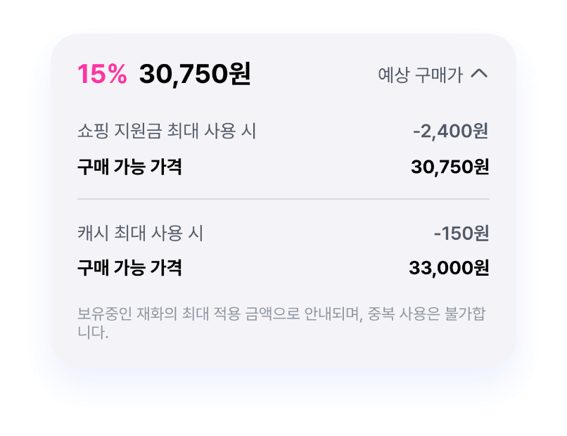 쇼핑에서 적용하면 최대 혜택가에 구매할 수 있어요!